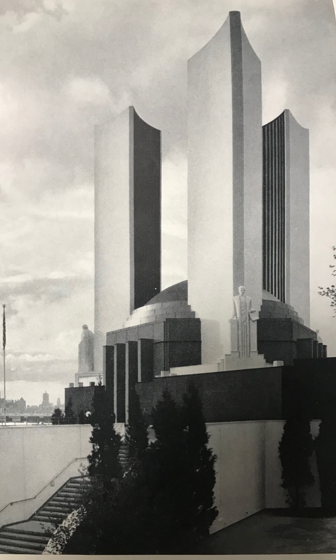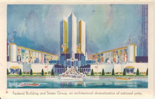 The Federal Building towers were all the same size. But what is interesting about the angle of this photo is it gives the impression that the center tower is taller than the two side towers. Is it possible that the City of Faith towers were designed with the center tower as prominent because of a photo of the Federal Building? Its hard to say for sure. But there is more.