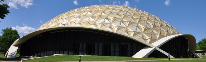Compare that with the Howard Auditorium and its famous gold dome with geometric shapes. While these types of modular buildings were not uncommon, it seems likely that this may have been where the idea for the geodesic dome building may have come from.