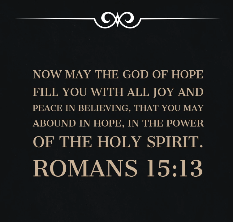 The hope that flows from the Spirit is a hope filled with joy and peace because God is good and so is his future for us.