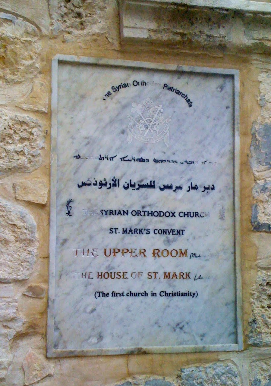 Today, on that site is the Monastery of St. Mark, which holds the 6th Century inscription: “This is the house of Mary, mother of John, called Mark. Proclaimed a church by the holy apostles under the name of the Virgin Mary, mother of God, after the ascension of our Lord Jesus Christ into heaven. Renewed after the destruction of Jerusalem by Titus in the year A.D. 73.”